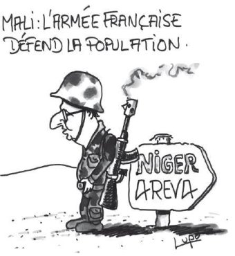 LES OBJECTIFS ANNONCÉS PAR LE GOUVERNEMENT EN CACHENT D’AUTRES ! C’EST LE SENS DE L’INTERVENTION DE NOTRE CAMARADE AFRICAIN. La guerre de Hollande pour sécuriser les populations maliennes ? Non, c’est pour sécuriser les richesses minières de toute la zone sahélienne qui intéressent la France et ses entreprises. Voir Areva au Niger avec ses mines d’uranium d’Arlit et d’Imouraren. C’est rien moins que l’avenir de l’industrie nucléaire française qui est en jeu. Pas d’intérêts français au Mali ? Archifaux. Outre les intérêts économiques avec l’uranium de Faléa et le pétrole attendu du soussol du Nord Mali, il y a la base militaire de Tessalit que l’armée française a reprise, véritable enjeu stratégique pour l’influence française dans la zone. De plus, les intérêts français se défendent aujourd’hui dans un contexte de concurrence exacerbée avec la Chine notamment. La France cherche à reconquérir un terrain où elle était en train de perdre, l’ancien président ATT lui ayant plusieurs fois fait faux bond. La France veut des élections pour instaurer la démocratie au Mali ? Archifaux. La France a toujours fait ou défait les présidents et les élections en fonction de qui servirait le mieux ses intérêts, exemples de la Côte d’Ivoire, du Tchad, du Burkina, du Niger, présentés à l’appui.