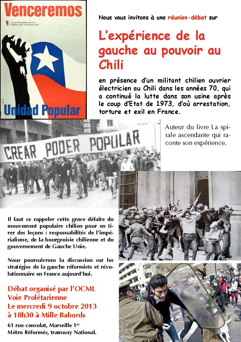 Il faut se rappeler cette grave défaite du mouvement populaire chilien pour en tirer des leçons : responsabilités de l’impérialisme, de la bourgeoisie chilienne et du gouvernement de Gauche Unie. Nous poursuivrons la discussion sur les stratégies de la gauche réformiste et révolutionnaire en France aujourd’hui.