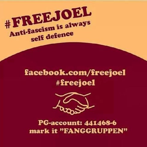 Joël, un militant antifasciste de Suède, a été arrêté puis emprisonné suite à une manifestation antifasciste à Kärrtorp (banlieue de Stockholm) le 22 décembre 2013. Cette manifestation regroupant près de 20.000 personnes était en réponse à l’attaque d’une autre manifestation par des nervis fascistes qui avait été repoussé par des militants antifascistes parmi lesquels... Joël.