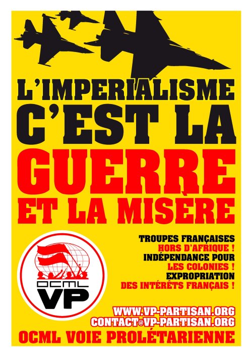 Au Mali, en Centrafrique et ailleurs, les troupes françaises doivent dégager. C’est l’impérialisme français qui a ruiné ces pays, comment peut-il aujourd’hui prétendre vouloir les sauver ? Ici, en France, nous avons le devoir de combattre cet impérialisme de l’intérieur. Le combattre en menant campagne contre toutes ses interventions politiques, économiques et militaires à l’étranger. Le combattre également en unissant les prolétaires d’ici, dont beaucoup sont arrivés en France parce que leur pays souffre de l’impérialisme français. Nous unir entre exploités et opprimés, parce que nous pouvons et devons l’être.