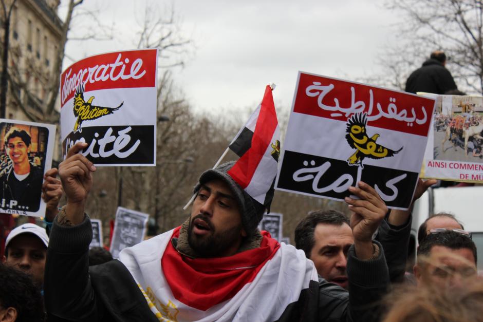 Nous jeunes égyptiens venus en France pour fuir la dictature ou en quête d’une vie meilleure, avons manifesté à multiples reprises depuis le 25 janvier 2011 en soutien à la révolution égyptienne et contre les pouvoirs répressifs qui se sont succédés, de Moubarak à El Sissi en passant par le Haut Conseil militaire et les Frères musulmans.