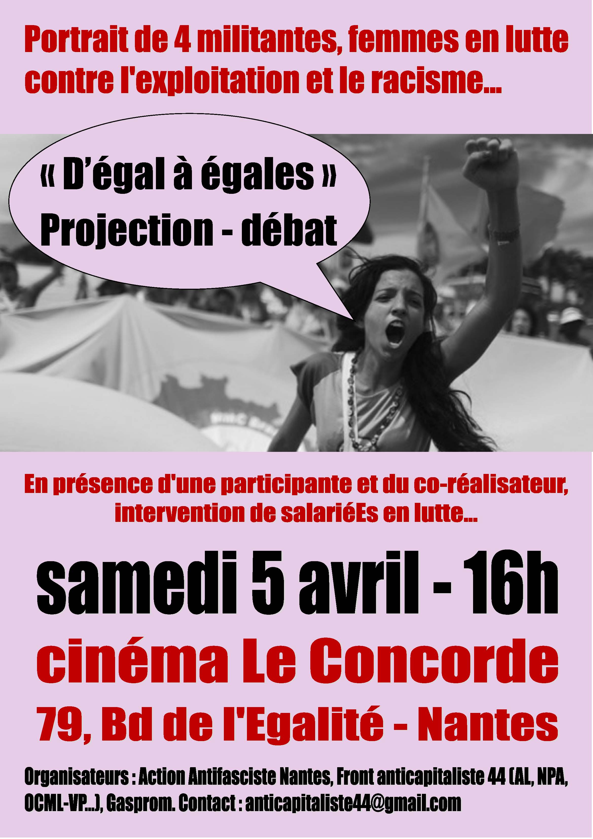Nous t’invitons à en débattre autour de la projection du film « D’égal à égales » : un portrait de 4 militantes syndicalistes, femmes en lutte contre l’exploitation et le racisme.