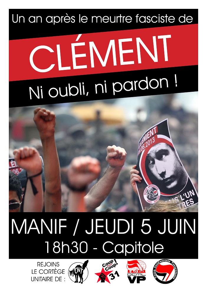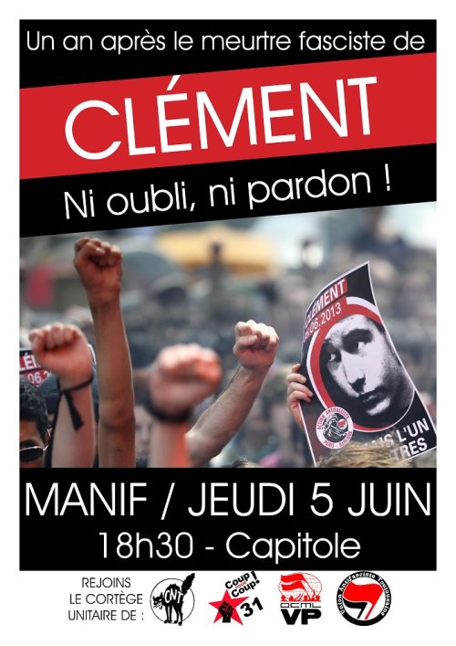 Pour cela Clément doit vivre dans nos luttes, pour l’égalité, pour la justice sociale, pour se libérer du fascisme et du capitalisme. Pour Clément et pour les autres victimes du fascisme il n’y aura ni oubli ni pardon, rien ne restera impuni. Seule la lutte paie.