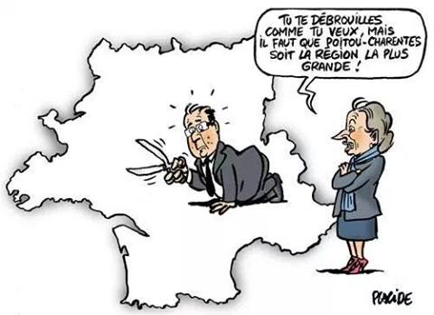 La réforme territoriale tombe toute ficelée d’en haut : Hollande et Valls ont déjà décidé du nouveau découpage des régions, sans demander leur avis aux habitants. On ne comprend pas vraiment ce qui a poussé à regrouper ensemble le Limousin, le Poitou-Charentes et le Centre, et le gouvernement ne semble même pas tenu de donner des raisons. Il semble que, jusqu’à la dernière minute, Hollande se soit laissé influencé par les coups de pression de tel ou tel député ou président de région : au final, cela donne une nouvelle carte totalement éclectique, sans cohérence apparente.