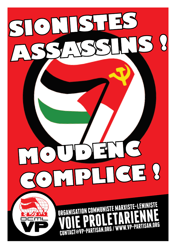 Israël n’est que le poste avancé des impérialistes au Moyen-Orient ! C’est pour cela que nous affirmons que la libération de la Palestine est partie prenante de la lutte anti-impérialiste et du combat contre le capitalisme. Soutenir la Palestine ce n’est pas juste dénoncer des massacres, mais soutenir la destruction du sionisme et d’Israël en vu d’établir un seul Etat libre et démocratique : la Palestine !