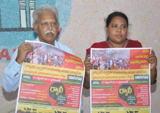 VV : Nous nous opposons vivement à l’accord de pouvoirs spéciaux au gouverneur sur les recettes et l’ordre public d’Hyderabad étant donné que cela habiliterait indirectement le pouvoir central a contrôler le capital commun. KCR *11, en invitant les grands organes d’entreprises à investir au Telengana, applique le programme de la Banque Mondiale. Le Telengana est une société agraire et KCR cherche à la transformer en Singapour, ce qui n’est ni possible ni conseillé. KCR a sacrifié l’intérêt des tribaux pour le Telengana en autorisant la fusion de sept municipalités de la division de Bhadrachalam du district de Khammam dans l’Andhra Pradesh. Nous ne sommes pas pour les projets qui permettent la submersion à grande échelle des zones tribales.