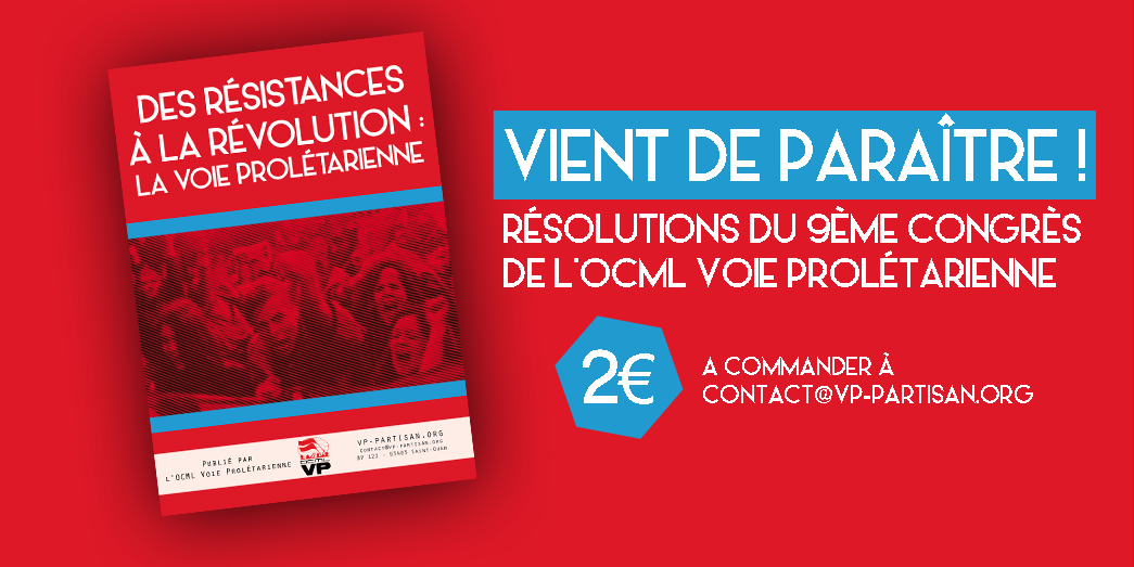 Le 9ème Congrès de l’OCML Voie Prolétarienne s’est tenu durant l’été 2014. Après un an de préparation, cinq résolutions ont été votées au congrès, après débats et amendements, assemblées et réunions de cellules dans toute l’organisation.