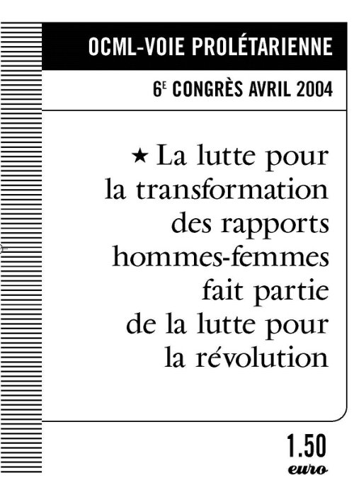 Cette Résolution marque l’engagement de Voie prolétarienne à faire progresser l’analyse et la pratique politique dans ce domaine, même si la forme reste à définir. Et elle donne une orientation pour le faire. Dans cette orientation, Voie prolétarienne s’affirme clairement féministe parce que communiste et entend tirer toutes les conséquences théoriques et pratiques de cette ligne politique. Au nom de son caractère secondaire, la lutte des femmes a trop souvent été négligée dans l’histoire du mouvement communiste. Or, pour nous, s’il est clair qu’il n’y aura pas de libération des femmes sans socialisme, nous sommes aussi conscients qu’il n’y aura pas de révolution véritablement socialiste sans un processus révolutionnaire qui intègre la lutte pour la transformation des rapports hommes-femmes. Cette résolution, c’est en quelque sorte les outils pour mener cette lutte et nous appelons tous les camarades, prêts ou prêtes à s’engager dans ce travail, à le faire avec nous.