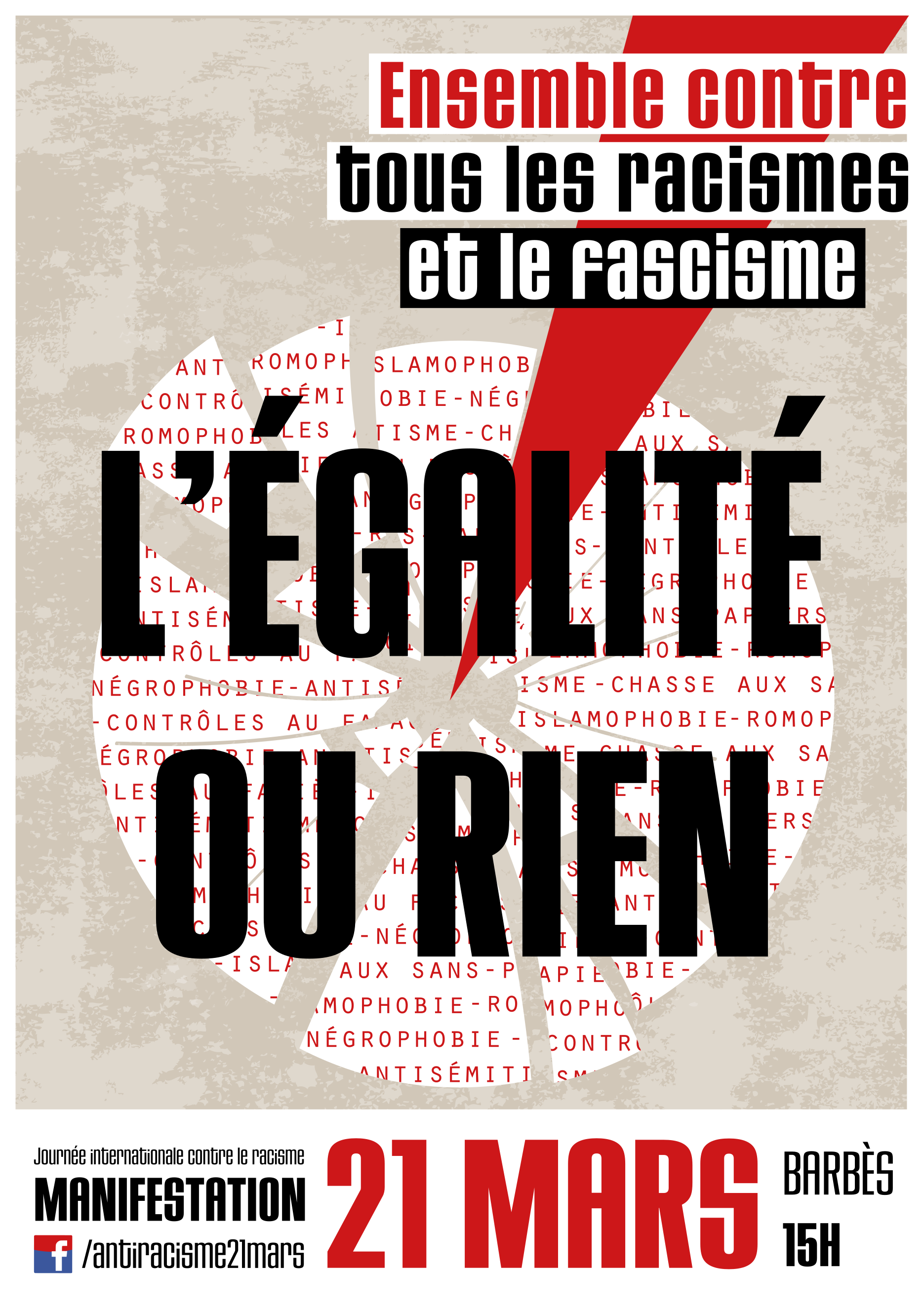 C’est pourquoi le 21 mars nous manifesterons ensemble en France et dans tous les pays du monde contre le racisme et contre le fascisme.