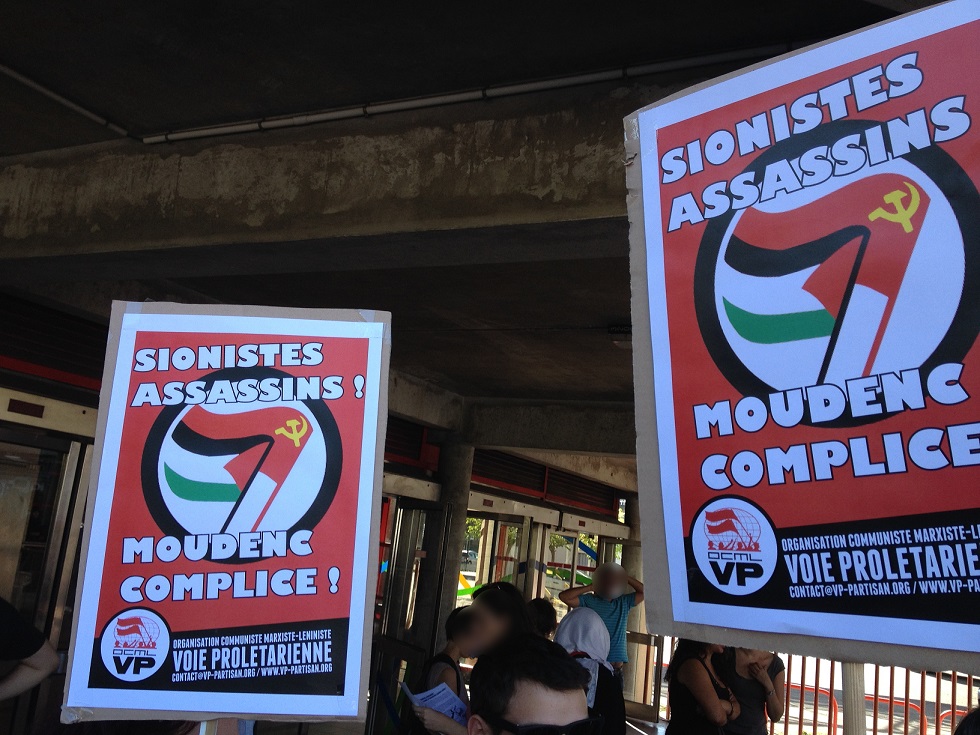 Par ailleurs, des membres de l’officine sioniste UEJF (Union des Etudiants Juifs de France) sont venus perturber, sans succès, la conférence proférant des amalgames scandaleux. Nous dénonçons ces tentatives de la part des sionistes de dénaturer le conflit colonial en Palestine occupée en le faisant passer pour un conflit religieux. Les sionistes font systématiquement un chantage à l’antisémitisme. Pour notre part, nous affirmons que l’antisémitisme est un crime trop grave pour qu’il soit confié à ces faussaires.