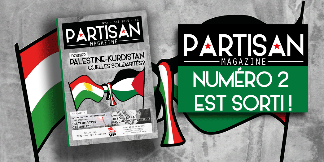 Dans ce numéro 2 de Partisan-Magazine, le dossier porte sur la Palestine et le Kurdistan. Est-ce que nous n’arrivons pas après la bataille ? C’est en juillet-août derniers que l’armée sioniste a pilonné et massacré à Gaza. C’est à partir de septembre que la région de Rojava et la ville de Kobané sont apparues comme un point chaud, militairement et politiquement.
