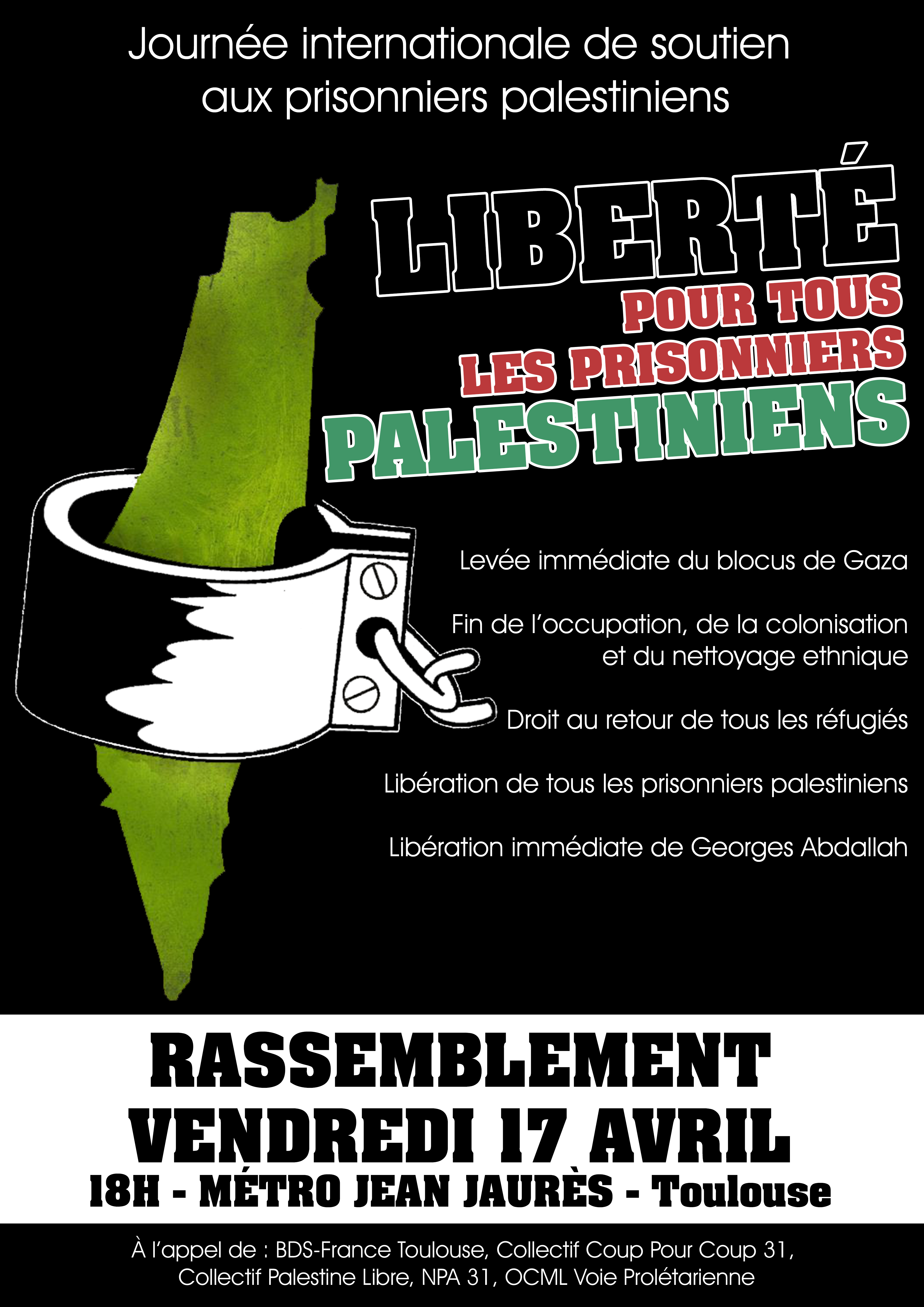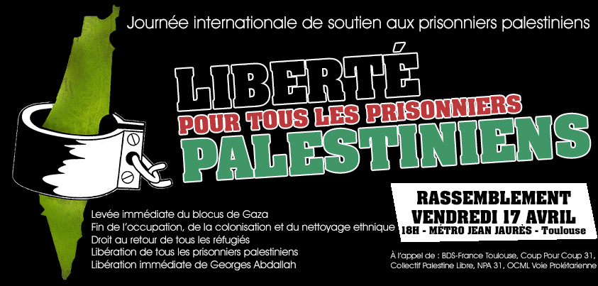 Actualité > 17 avril 2015 : Liberté pour tous les prisonniers palestiniens !
