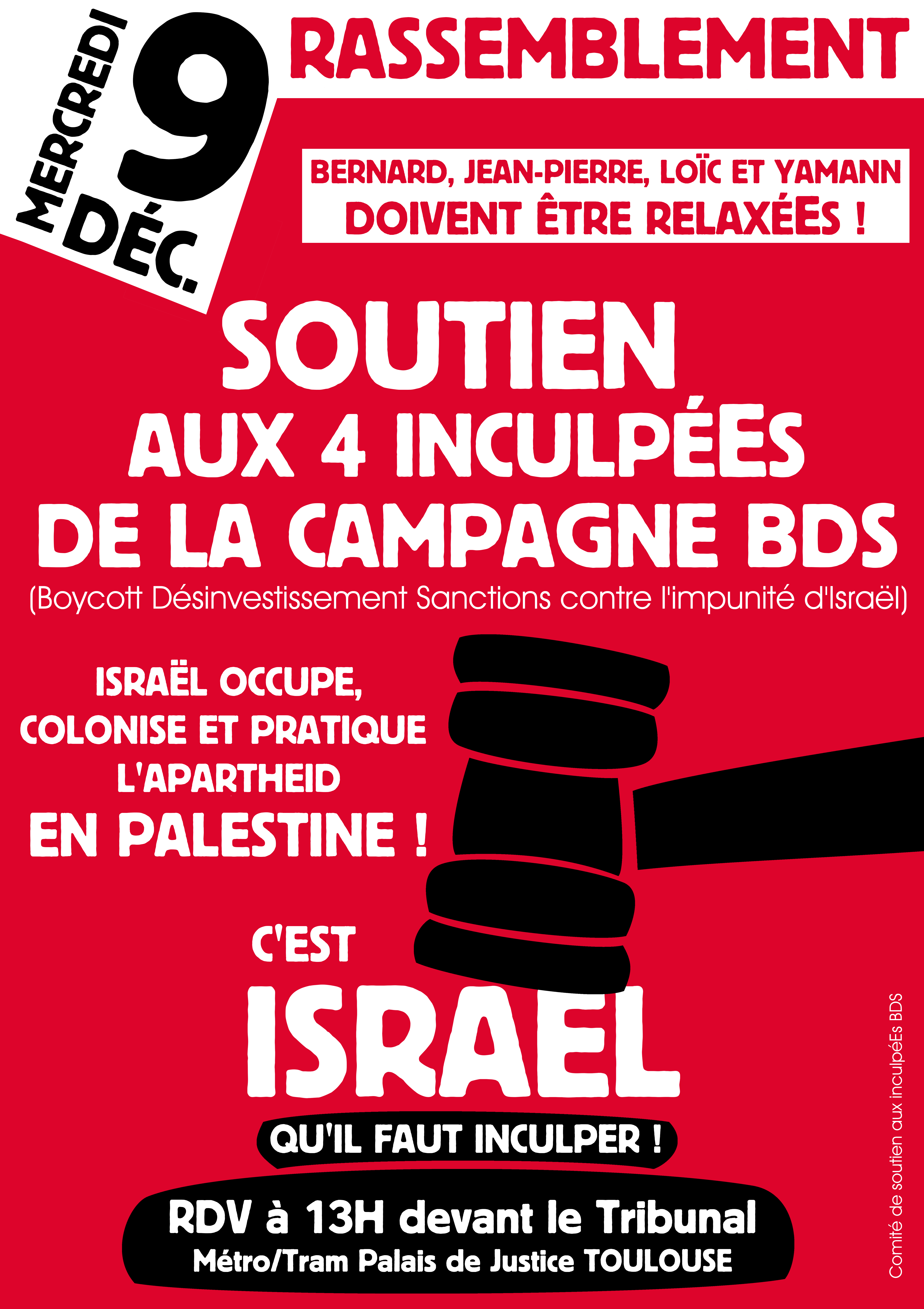 Le comité de soutien aux inculpéEs BDS de Toulouse vous appelle à vous mobiliser nombreux