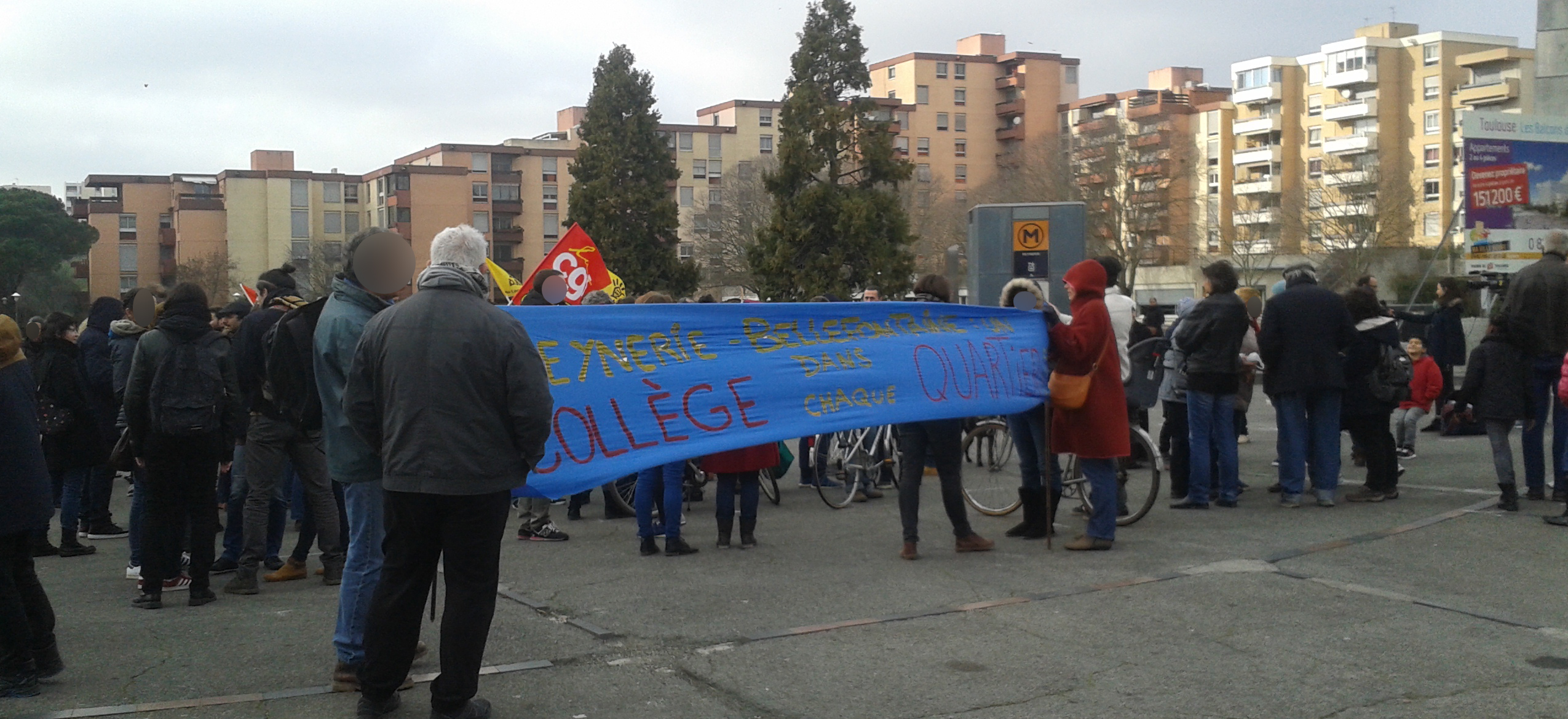 Face à ces attaques, nous étions plus de 200 parents, enfants, habitants et personnels a manifesté à la Reynerie mardi 31 janvier en scandant « Les enfants du Mirail ne sont pas des cobayes ! » « Non au mépris ! Oui au collège de la Reynerie ! »