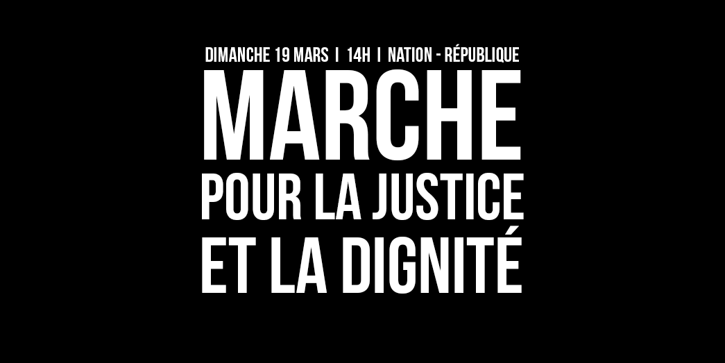 Nous appelons tout-e-s celles et ceux qui se sentent concernés par ces sujets à nous rejoindre dans toutes les initiatives à venir et à participer très largement à la Marche pour la Justice et la Dignité qui aura lieu le dimanche 19 mars 2017 à Paris. Contre la hogra, contre l’humiliation, contre le racisme et les violences policières, contre les guerres lâches faites en notre nom contre des peuples qui ne nous ont rien fait.