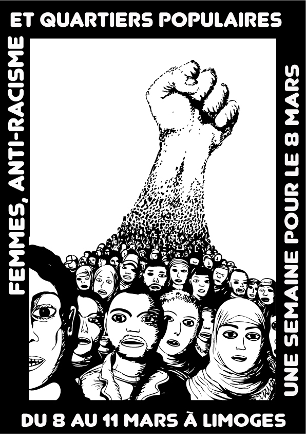 Le Planning Familial 87 s’inscrit pleinement dans la mobilisation proposée par le « collectif 8 mars 87 » autour d’une semaine de mobilisation pour la journée internationale des luttes des femmes du 8 au 11 mars à Limoges. Le fil rouge de cette année sera « Femmes, anti-racisme et quartiers populaires ».