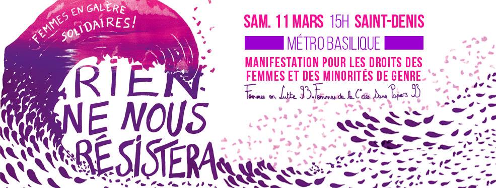 A l’appel de : Femmes En Lutte 93, Groupe Femmes de la Coordination 93 de lutte pour les sans papiers, Lallab, Alerta Feminista, Collectif Féministes Révolutionnaires, Solidarité Femmes Kobanê, Pride de Nuit, Comité de vigilance contre les violences policières à Pantin, OCML Voie Prolétarienne, KÂLÎ, NRJKIR Paris 8, FUIQP 93