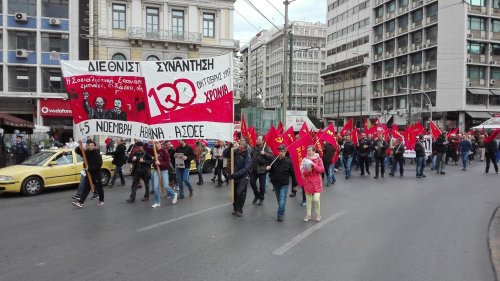 Events began on Saturday morning with a demonstration through the streets of Athens in defence of Communism and the lessons taught by the October Revolution of 1917.