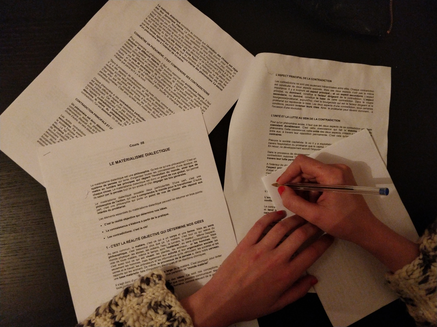 A l’OCML-VP, nous pensons qu’il est essentiel de nous former à la philosophie marxiste, parce que c’est le socle sur lequel se construisent ensuite nos positions politiques et idéologiques, notre combat pour aujourd’hui et pour la libération de demain. C’est ce qui donne de la rigueur à notre action.