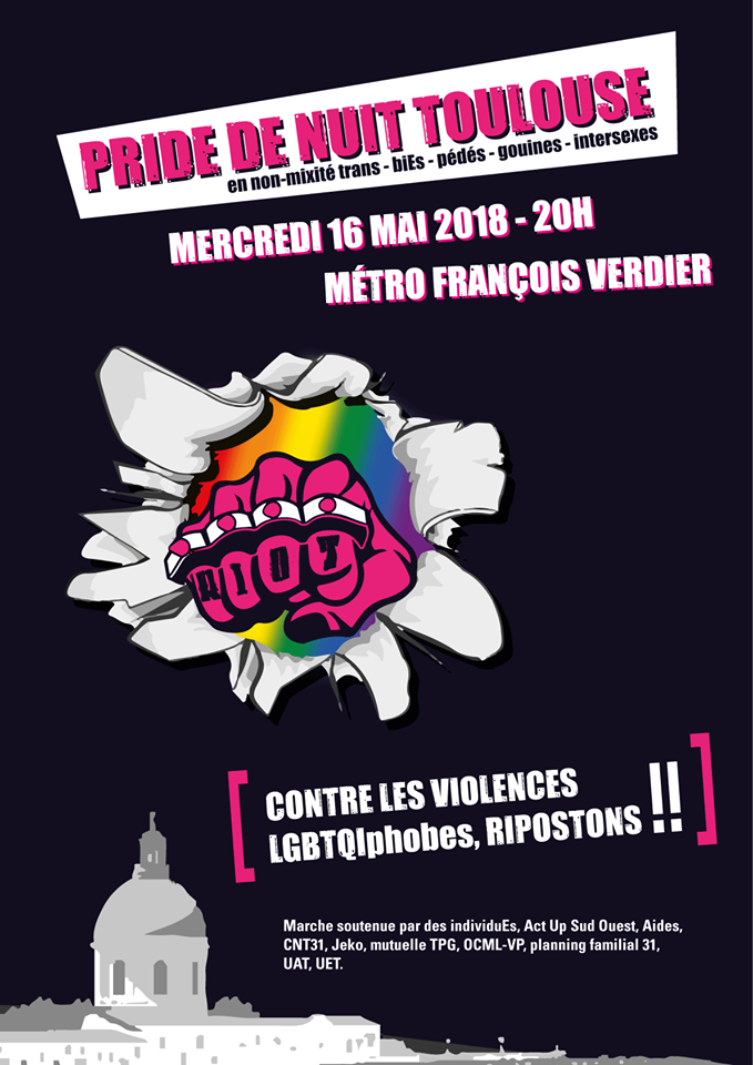 Marche de nuit non-mixte TBPGI contre les violences LGBTI-phobes le 16 mai à Toulouse 20h – François Verdier