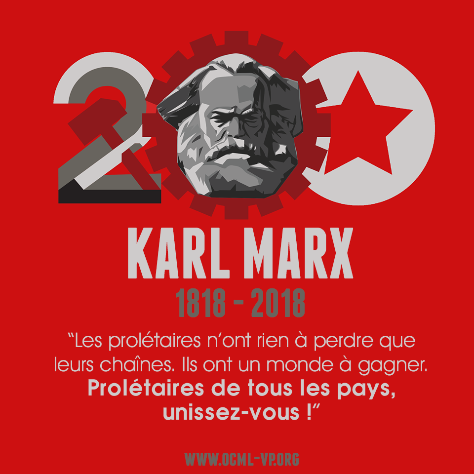 Nous pensons que l’on ne peut analyser le monde sans partir de Marx. Certains ont cru dépasser le Marxisme, et se sont retrouvés dans « l’éclectisme idéologique », dans les ornières de la collaboration de classe, du réformisme, d’autres, dogmatiques, se pensant « gardiens d’une doctrine » comme si son œuvre était en quelque sorte arrêtée, et ne devait plus faire l’objet de recherches. Pour nous, l’assimilation critique, la polémique, sont au centre du développement de la théorie Marxiste. Le Marxisme est une conception du monde qui intègre perpétuellement de nouvelles acquisitions (problèmes à résoudre, contradictions, luttes, actions). Ne pas oublier, c’est une théorie qui se veut une théorie du mouvement. Comme nous le disons dans notre Plateforme : « …Le militant n’est pas seulement celui qui porte l’orientation dans les masses, mais aussi celui qui l’élabore… car il n’est pas qu’un rouage anonyme, un individu noyé dans le collectif… ». Élaborer, participer, porter une ligne, être Marxiste, c’est échapper au pessimisme définitif ainsi qu’à l’optimisme facile. Marx a su définir, de manière toujours pertinente et matérialiste, les tâches nationales et internationales des communistes. C’est bien l’organisation des communistes qu’il faut construire pour abattre le capitalisme.