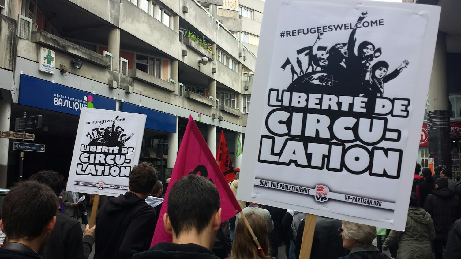 Liberté de circulation et d’installation pour tous et le respect du droit d’asile ! Régularisation globale de tous les sans-papiers de plein droit ! Égalité totale des droits entre Français et Étrangers ! Abrogation des lois racistes ! Vérité et Justice pour les victimes de crimes policiers !