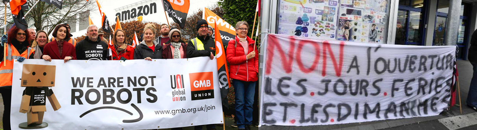 De notre point de vue d’exploité.e.s, les choses sont simples. Dans cette guerre entre exploiteurs, nous n’avons pas intérêt à prendre parti. Nous ne devons pas céder un pouce sur nos conditions de travail sous prétexte de sauver le petit commerce. De leur côté, les travailleuses et travailleurs des plateformes Amazon s’organisent et se battent pour leurs conditions de travail. Voilà une lutte d’avenir que doivent soutenir tous les exploité.e.s !