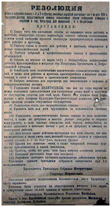 1) Procéder immédiatement à la réélection des soviets au moyen du vote secret. La campagne électorale parmi les ouvriers et les paysans devra se dérouler avec la pleine liberté de parole et d’action ;