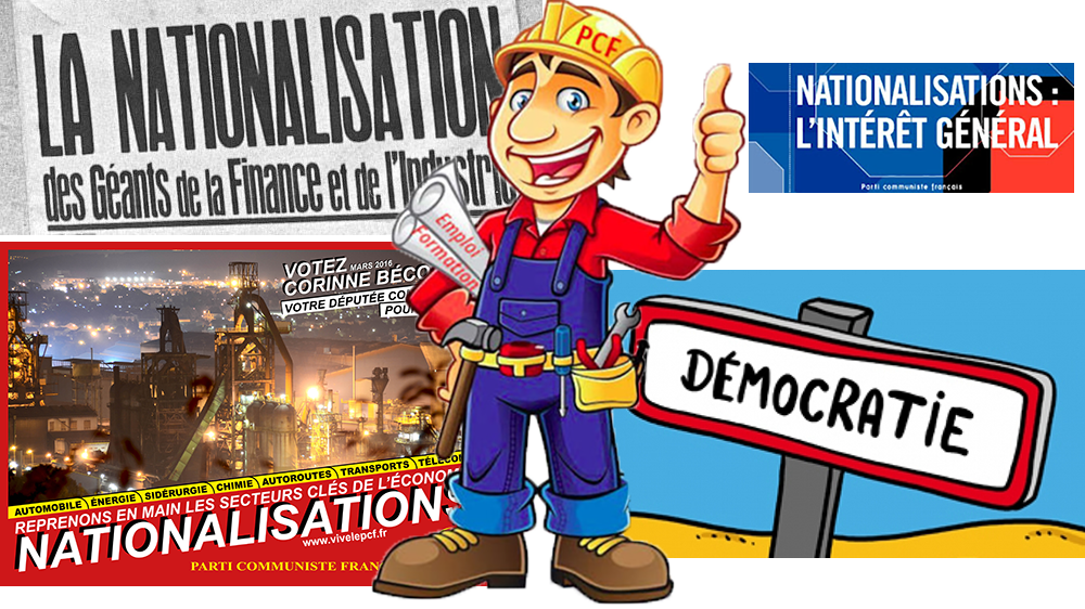 Le PCF croit avoir trouvé la recette en accouplant systématiquement le mot démocratique à celui de nationalisation. Voilà qui rassure la petite bourgeoisie : les cadres, ingénieurs et autres ne seront pas dirigés par la classe ouvrière. Voilà qui fait progressiste dans la bouche d’un vieux parti bureaucratique. Voilà qui permet aux révisionnistes de faire « moderne », de se rapprocher un peu plus encore de leurs compères de la CFDT et autres autogestionnaires.