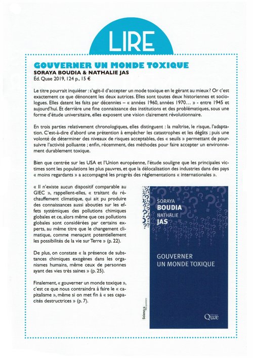 Approfondir > Lire : "Gouverner un monde toxique" de Soraya Boudia et Nathalie Jas