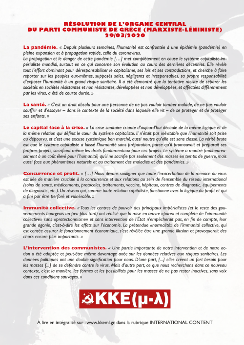 Approfondir > Coronavirus : résolution du KKE(ml) de Grèce