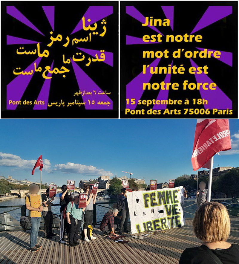 Nous étions certes peu nombreux sur la Passerelle du Pont des Arts à Paris, et nous les seuls soutiens français, mais nous avons pu mesurer l’importance de ces petites mobilisations, établir des liens avec plusieurs manifestantes, expliquer le sens de notre présence au combat commun contre l’impérialisme, le patriarcat, le fondamentalisme et la réaction.