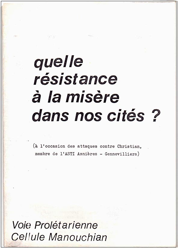 Dénoncé par tous - jusqu’au maire PC de la ville, Christian portait une vision politique de son travail. A l’époque, l’OCML Voie Prolétarienne avait réalisé une petite brochure diffusée largement sur la question des cités et du logement populaire