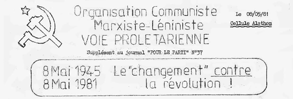 Voilà ce qu’évoque aussi le 8 mai 1945 : la trahison par le PCF et la CGT des aspirations révolutionnaires de la lutte ouvrière.