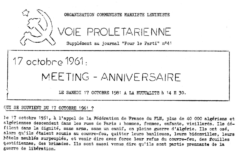 Tract - 17 octobre 1981