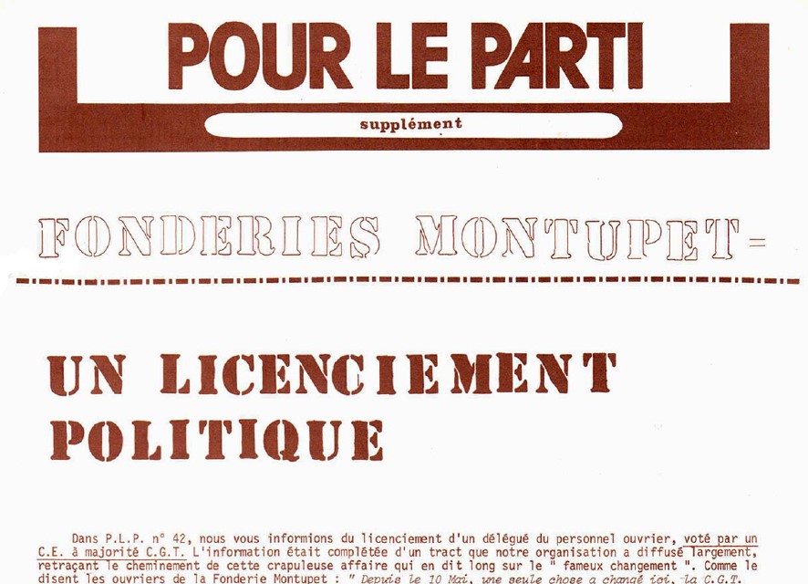 En Juillet 1981 (juste après l’élection de Mitterrand donc), une grève importante avait lieu dans une fonderie de Gennevilliers (92), animée pour l’essentiel par des ouvriers OS immigrés. Un de nos camarades de VP, professionnel et délégué du personnel CGT, prenait ouvertement fait et cause pour la grève, mais CONTRE l’avis de la section CGT de l’usine, dirigée par un collectif d’aristocrates ouvriers ayant perdu tout honneur et tout sens de la lutte des classes.