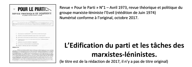 L’édification du Parti et les tâches des marxistes-léninistes