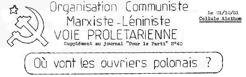 La situation en Pologne est très instable. Les bourgeois ont le pouvoir, l’appareil d’Etat, l’armée. Ils ont dû reculer sous, la pression du mouvement ouvrier, et ne peuvent pas aujourd’hui revenir à « l’Ordre ». Face à eux, les ouvriers sont puissants, les ont forcés à plier, mais ils restent clans la confusion, ne voient pas encore clairement où aller. La religion, le nationalisme restent puissants et sont un frein.