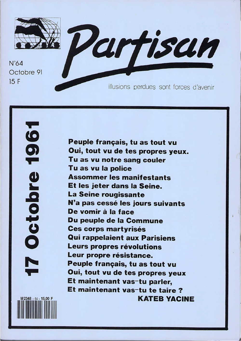 Vous êtes dans la rubrique > Archives > Couverture : Poème de Kateb Yacine 17 octobre 1961