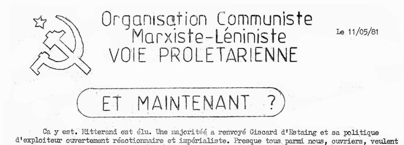 Camarades, nous avons souhaité la victoire de Mitterrand pour que la classe ouvrière puisse se débarrasser de ses illusions sur le « changement » qu’il nous propose. Pour les mêmes raisons, nous souhaitons un maximum de députés de gauche, de ministres communistes. Mais dès aujourd’hui, il va nous falloir lutter contre les appels au consensus, à la modération, à la sagesse. Dès aujourd’hui il va falloir lutter contre les illusions répandues par le PCF qu’avec lui ce sera le vrai changement. Dès aujourd’hui il va falloir lutter pour que nos exigences, notre force ne soient pas utilisées une fois encore à consolider le vieux monde capitaliste qui nous exploite. Rien n’est changé, au contraire :