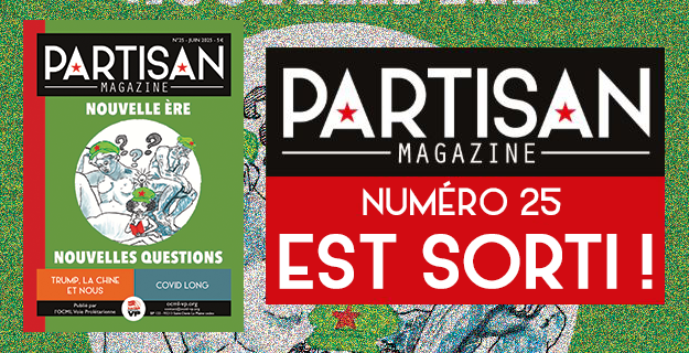Partisan Magazine est la publication de l’OCML Voie Prolétarienne. Son objectif ? Donner des outils de compréhension politique et théorique pour toutes les personnes qui luttent au quotidien contre ce système qui broie nos vies et ne nous offre aucun avenir autre que la misère et la guerre.