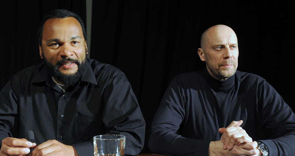 On sait qu’à partir de 2003, Soral se rapproche de l’ex-humoriste devenu politicien Dieudonné qui va lui faire bénéficier de sa popularité et lui servir de brise-glace. Là où le discours de Soral est truffé de références ésotériques à la tradition antisémite européenne du XIXème et du XXème siècle, Dieudonné résume le message sous formes de sketchs compréhensibles par tout le monde, agrémentés de « clins d’œil » d’inspiration nazie comme la fameuse quenelle.