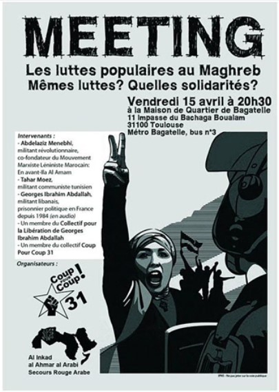 A l’annonce du décès du militant maoïste marocain Abdelaziz Menebhi (août 2025), nous avons retrouvé le début de son intervention, lors d’un meeting organisé par Coup pour Coup 31 (alors animé par des militants de VP) et le Secours Rouge Arabe.