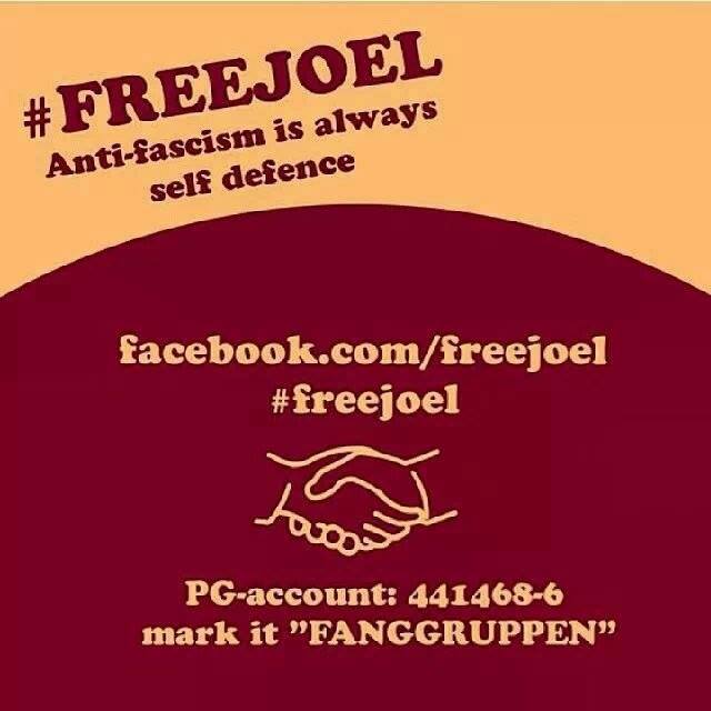 On 22. december 2013 Joel, a Swedish antifascist activist, was arrested and imprisoned following an anti-fascist demonstration in Kärrtorp (a suburb of Stockholm) . This demonstration, involving nearly 20,000 people, was in response to the attack of another event by fascist thugs. They had been repulsed by anti-fascist activists including ... Joel.