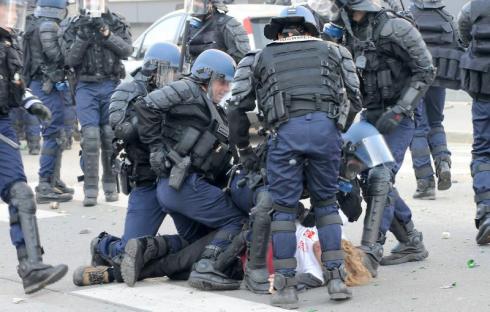 En réaction à cette forte mobilisation des Nazairiens, le sous-préfet a répondu par une présence massive des forces de l’ordre (BAC et gendarmes mobiles). Celles-ci usèrent largement de la provocation en infiltrant les cortèges, filmant et photographiant les manifestants, tirant des gaz lacrymogènes et des grenades offensives sur la foule ; le tout suivi d’arrestations et de mises en garde à vue. Systématiquement le lendemain, la procédure de comparution immédiate a envoyé trois inculpés en maison d’arrêt. On a dénombré une soixantaine de gardes à vue et 17 condamnations à des peines de prison ferme, soit un taux record d’incarcération de 28% ! Durant ces comparutions, le procureur n’eut de cesse de rappeler qu’il fallait « des condamnations exemplaires, afin de dissuader ceux qui seraient tentés d’avoir des comportements intolérables pour une démocratie, donnant une mauvaise image de la ville. »