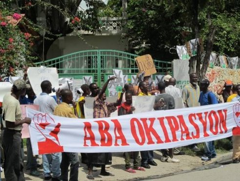 Nous demandons au peuple et aux travailleurs de France de parler de la vraie situation en Haïti, de dénoncer la présence des forces d’occupation de la Minustah, de démasquer la CIRH et les vraies raisons de la présence de la France et des autres pays impérialistes en Haïti. Nous leur demandons de réclamer avec nous que la France restitue la rançon qu’elle nous a imposée au moment de l’indépendance, soit la valeur de 27 milliards d’euros actuels.