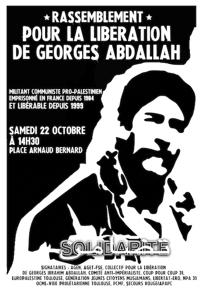 Manifestation à Toulouse le 22/10 : Liberté pour Georges Ibrahim Abdallah !