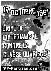 Nous avions décidé d’y participer, et avions appelé les participantEs à notre réunion sur la crise à y venir. Nous avions un tract, plus le tract de VP de 1981. Il faut dire que les camarades de VP (et de l’UCFml) était bien seuls à l’époque pour faire vivre la mémoire ouvrière. La manifestation du 17 octobre cette année était importante, beaucoup d’Algériens, jeunes, vieux, femmes. C’était une manif vivante et déterminée. Nous étions remontés à bloc. Mais les mots d’ordre étaient consensuels, « 17 octobre on n’oublie pas », « crime d’État ». Tout cela était vrai, mais ceux qui avaient voté les pleins pouvoirs au PS pour la répression n’étaient pas cités. Le PC n’avait pas soutenu le FLN, ce furent des militants communistes isolés, des tiers-mondistes, des chrétiens qui aidèrent le FLN. Là était la limite de cette manifestation. Plusieurs personnes étaient contentes de notre présence, alors que nous n’étions pas algériens. Pour nous c’est avant tout un combat de classe et internationaliste. Nous y avons distribué nos tracts, vendu notre journal et surtout notre brochure sur octobre 61. C’est dans des manifestations populaires comme celle-là qu’il faut aller.