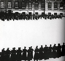 Le premier événement de 1905 se produisit le 22 janvier, lors de la manifestation pacifique de 200 000 personnes organisée par le pope Gapone (en liaison avec la police) afin de demander des réformes au Tsar. Le représentant du Tsar ordonna à la troupe de tirer sur la foule, des centaines de manifestants furent tués. Le mouvement de grève allait se renforcer, l’emprise des révolutionnaires sur le mouvement aussi. Des milliers de travailleurs sont en grève et il y a des occupations de terres dans tout le pays. Les marins du Cuirassé Potemkine se mutinent. Dans ces grèves, le but de Lénine était d’organiser les travailleurs de les amener à se poser la question du pouvoir.