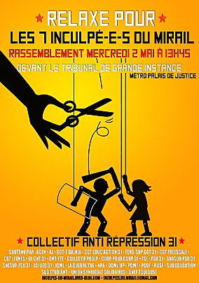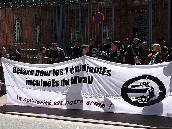 Aujourd’hui, mercredi 2 mai 2012, les 7 étudiant-e-s de l’Université Toulouse II Le Mirail sont passé-e-s à la Cour d’Appel de Toulouse.